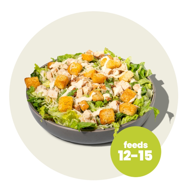 Freshly made salad with chicken, Parmesan cheese, crisp romaine lettuce, croutons, and our Beyond-made Caesar dressing. Feeds 12-15 people.